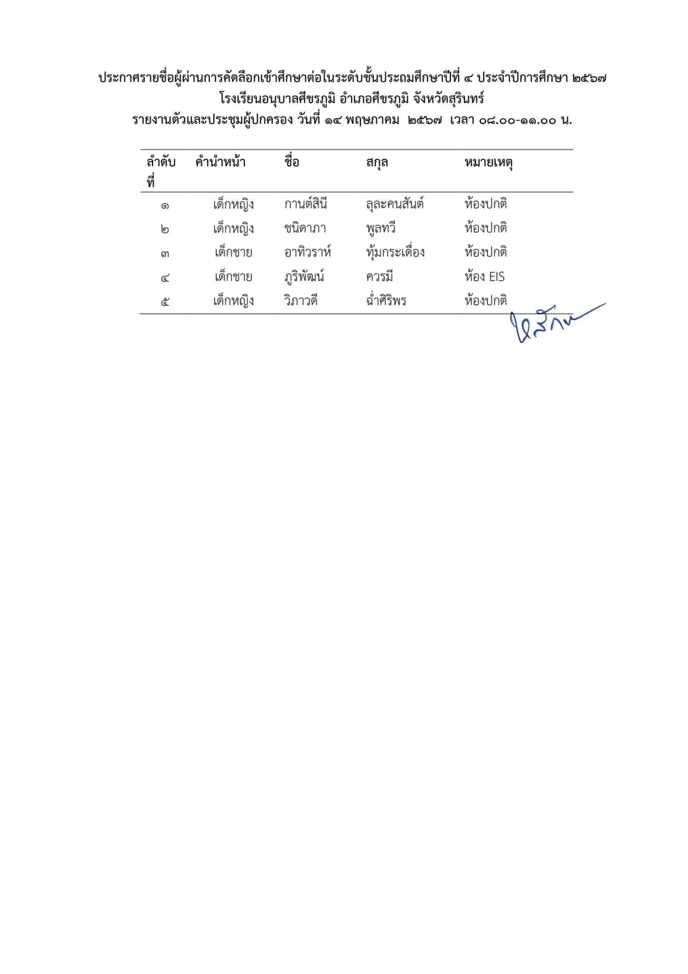 นักเรียนที่มีรายชื่อ รายงานตัวในวันประชุมผู้ปกครองของแต่ละสายชั้น