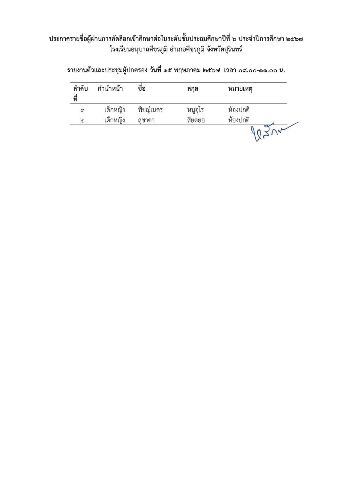 ประกาศโรงเรียนอนุบาลศีขรภูมิ
